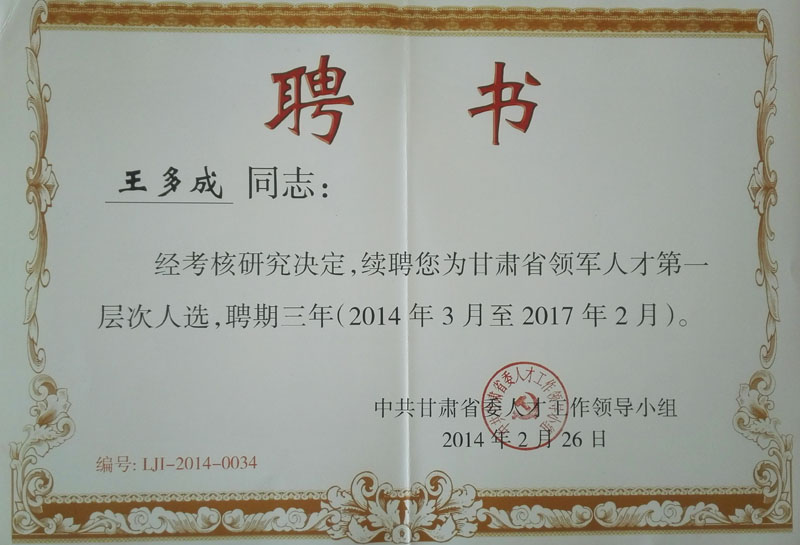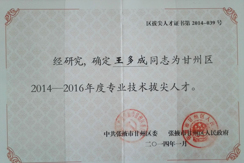 2014-2016年王多成甘州區(qū)專(zhuān)業(yè)技術(shù)…