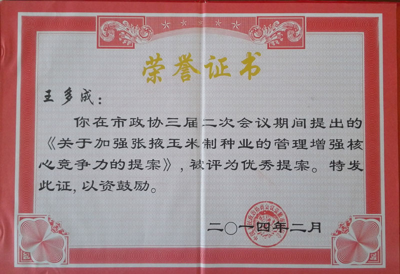 2014年榮獲張掖市政協(xié)三屆二次會(huì)…